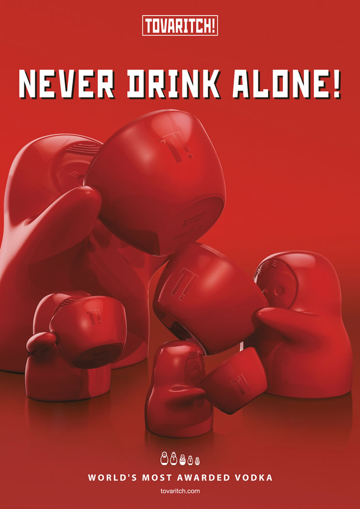 We created the "Never Drink Alone". A motivating call to action represented by the Matryoshkas Tovaritch!.